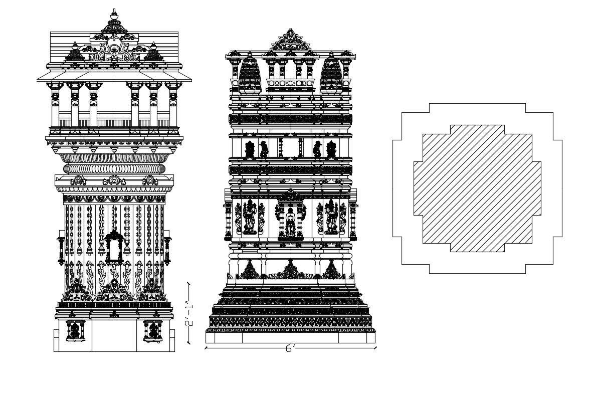CAD drawing details of ethnic style traditional column elevation design that shows column pillar units design, various other units styles, and various other blocks details download AutoCAD drawing for free.