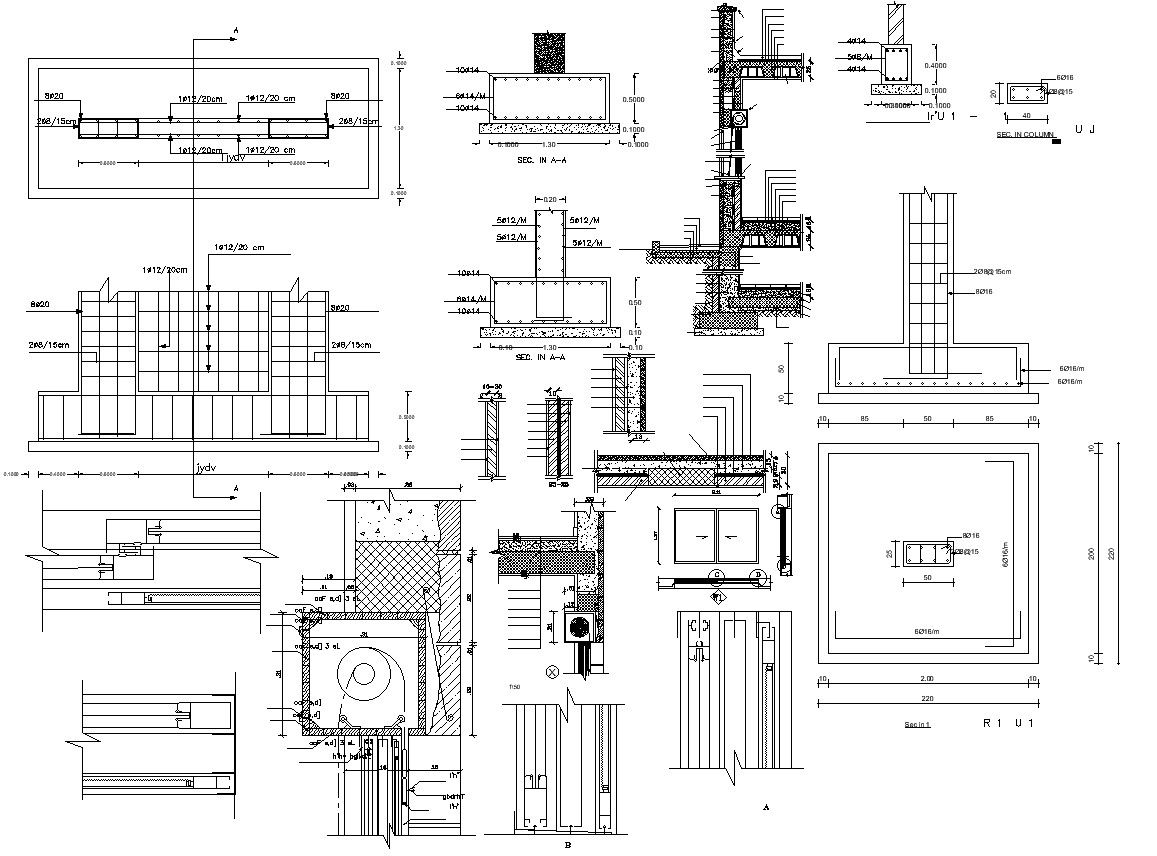 this is the structure details if many columns include reinforcement details, shop rolling shutter design, beam section details, sliding doors section and much more other details related to structure.