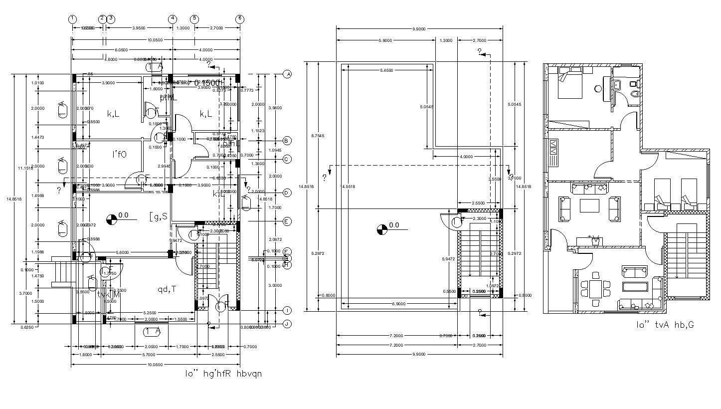 this is the planning of bungalow includes two-bedrooms, drawing living rooms, kitchen area, dining area, common toilet, working drawings of building, terrace floor plan, its an all details drawing of residential house.