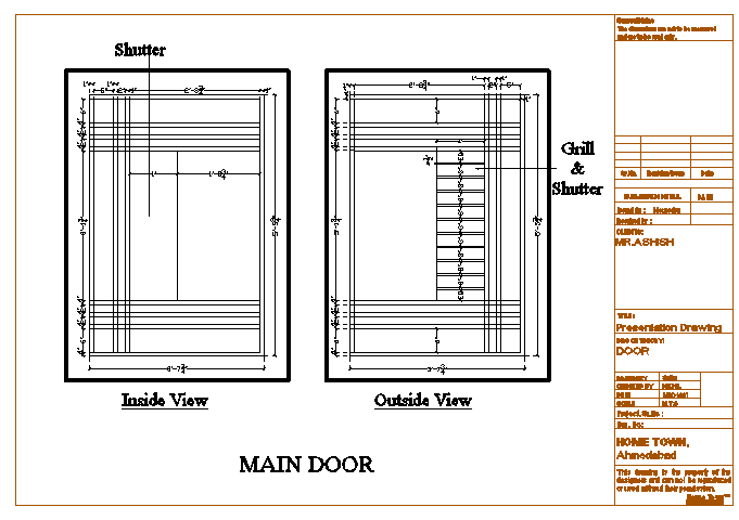 Door Inside view & out side view show in the door drawing detail with shutter design.