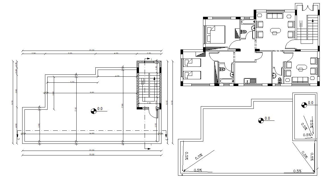 2D AutoCAD drawing of residence architecture plan includes fully furnished of 2 BHK with all dimension detail and terrace plan download DWG file of house project CAD drawing and get more detail in this DWG file.