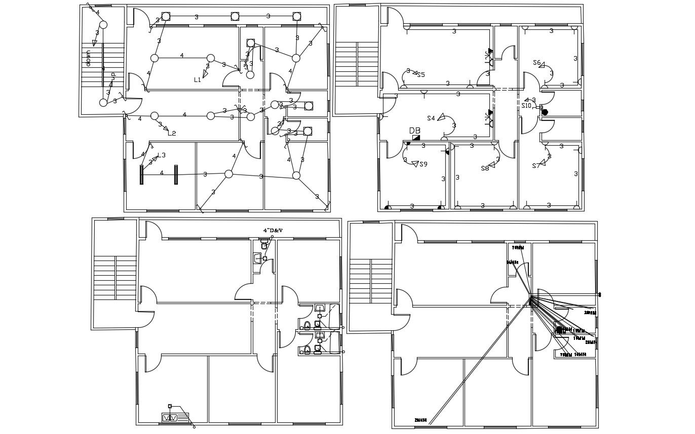 this is the drawing of flat building includes toilet and kitchen plumbing layout plan, electrical layout plan, and much more other details related to building.