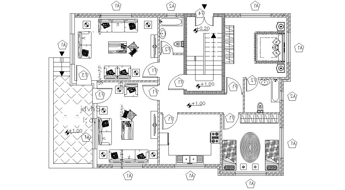 AutoCAD House With Furniture Layout Plan CAD Drawing