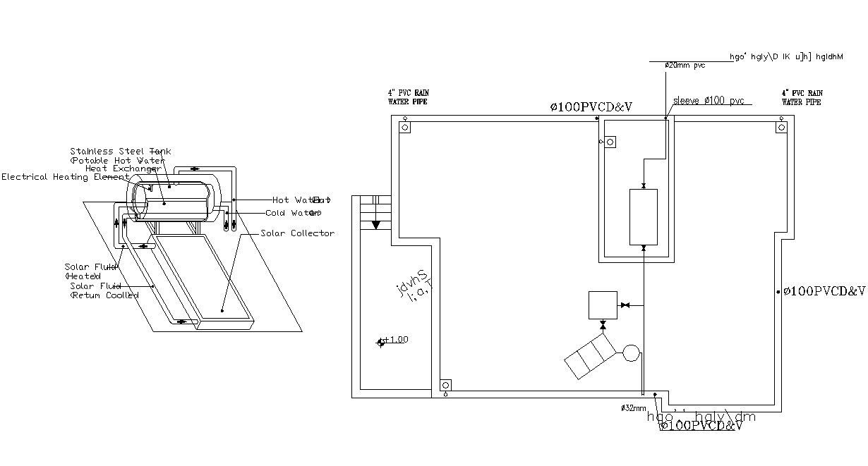 Download free DWG file of residence house terrace floor plan with PVC rainwater pipeline and solar electric power generation for home.
