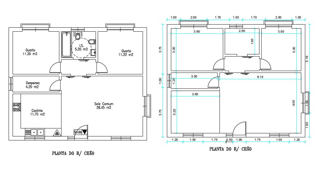 Architecture floor plan of 2 BHK house layout plan with all dimension and description details. download DWG file of simple house plan and use for this idea for new project CAD proposal drawing.