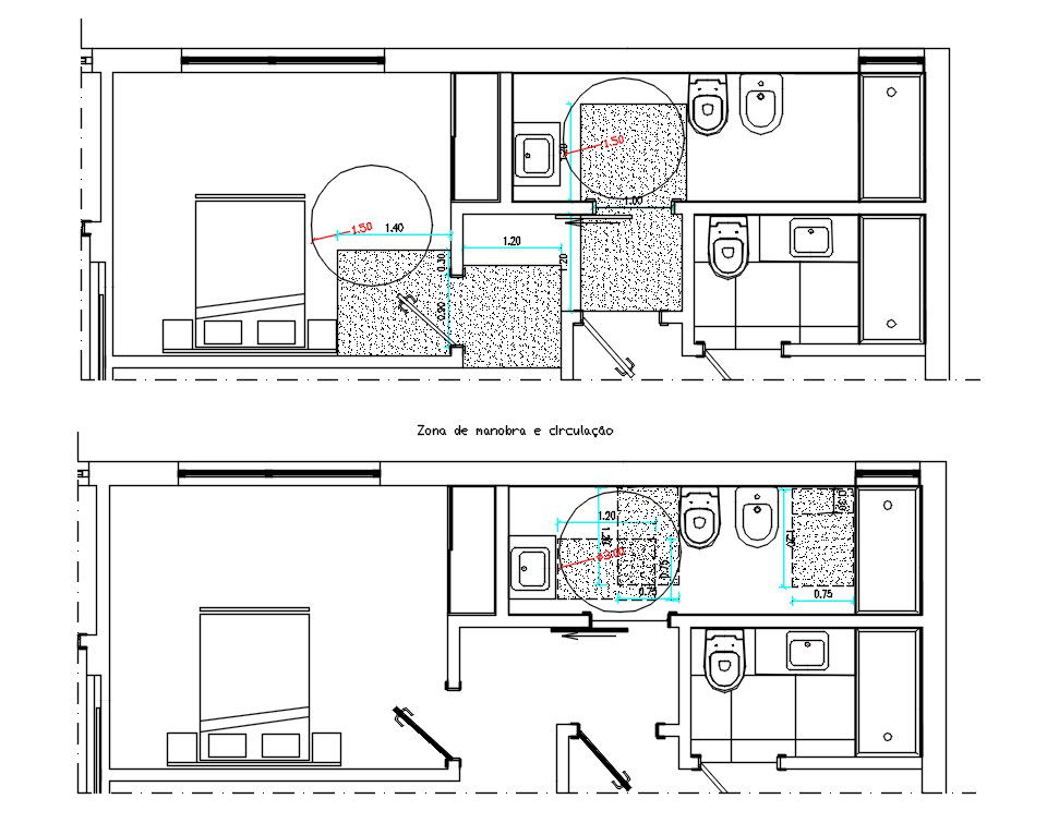 the interior design of the master bedroom with bathroom design CAD drawing includes access to toilet, washbasin and bathtub (1.20mx0.75m). download DWG bedroom furniture layout plan CAD drawing.