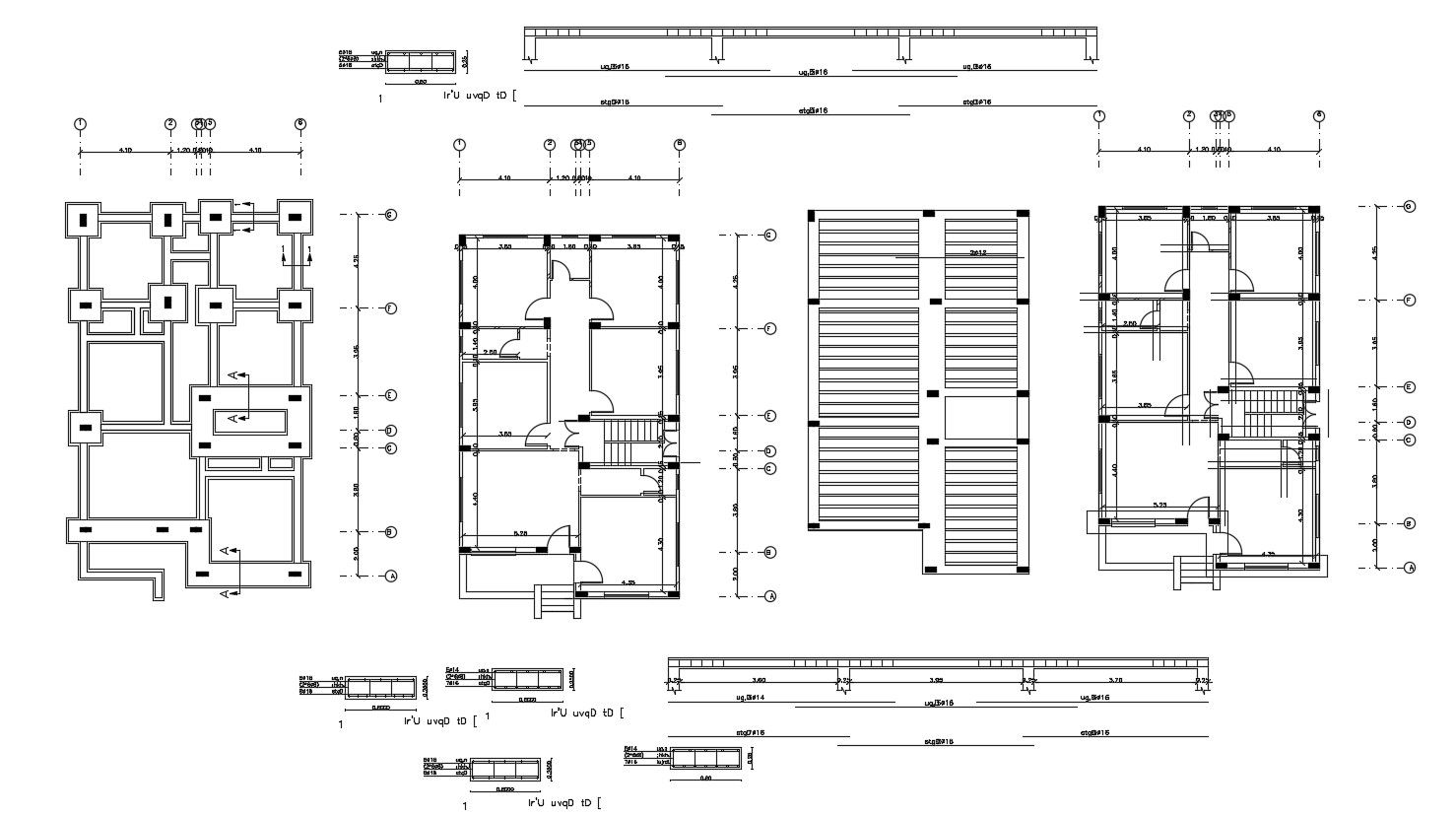 this is the many drawing of architecture and structure related.two-floor plan details of residential building.beam and column reinforcement details. centerline plan, column foundation details and much more other details.