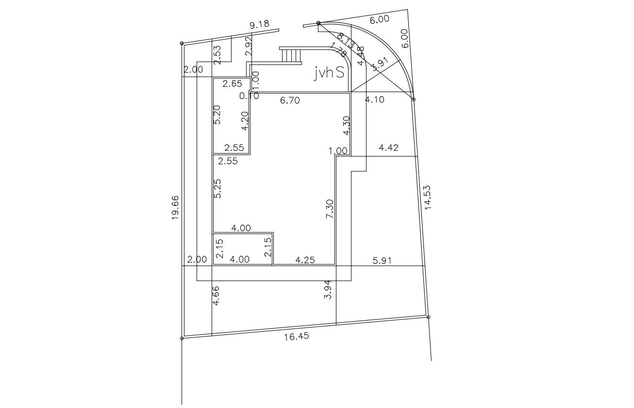 this is the drawing of survey plot and building marking details with peripheral dimension details, compound wall marking and site corner point demarcation.