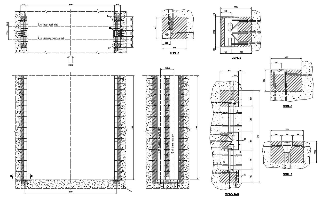 Download Free DWG file of embedded trashrack cutting plan section drawing with dimension detail. and get more detail in this CAD drawing.
