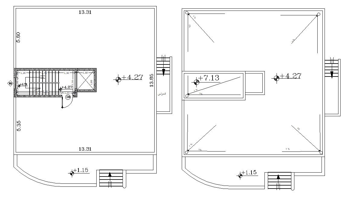 Download Free DWG file of residence house terrace floor plan CAD drawing with dimension detail and staircase cabin with PVC water rain pipeline detail.