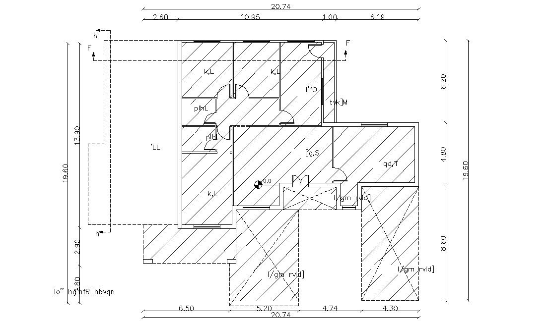 this is the lavish bungalow layout plan with working drawing dimension details.in this planning added cutouts, foyer, some rooms, toilets, section line and much more other details related to house.