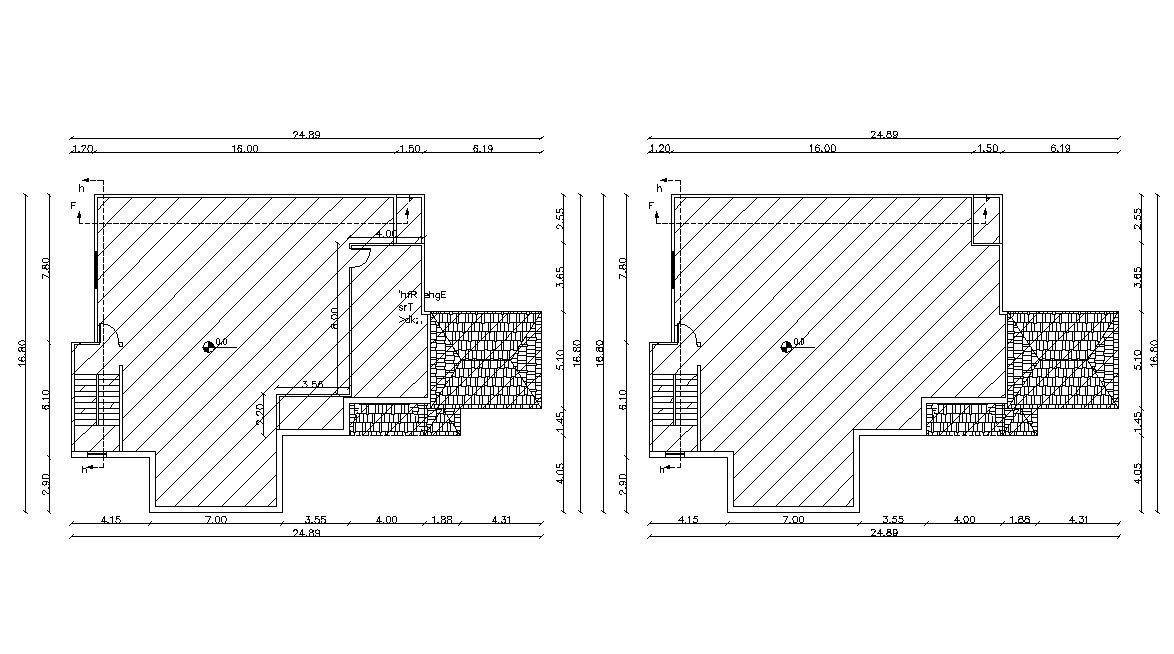 this is the two residential terrace floor plan with working dimension, roof and terrace different types of hatching and much more other details.