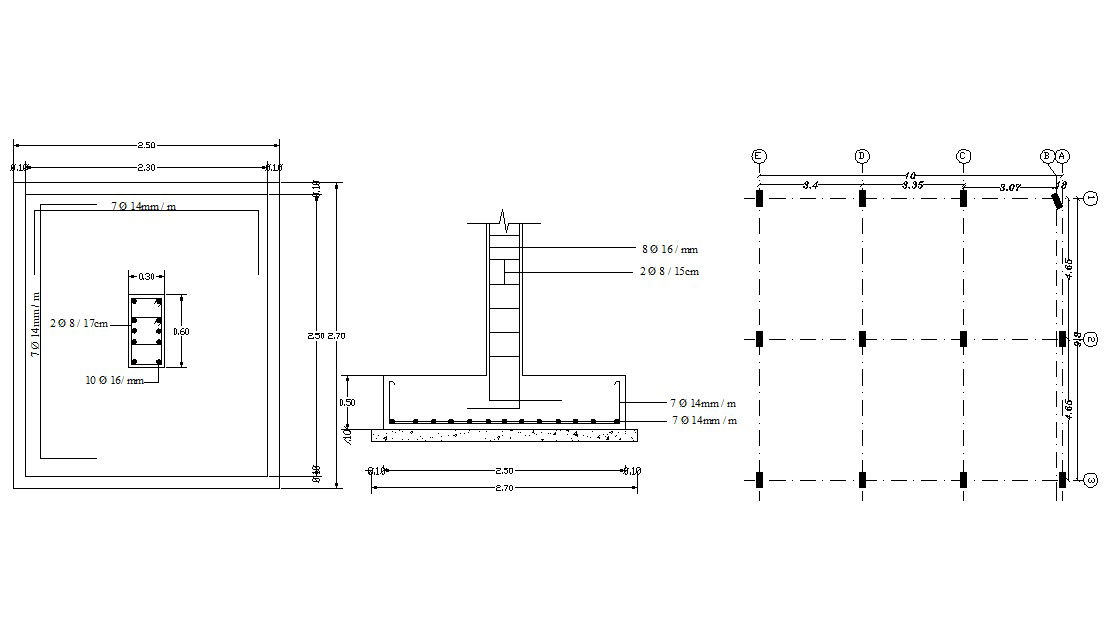 this is the drawing of column foundation structure drawing with reinforcement detail and column plan design. download free DWG file of construction column foundation structure design.
