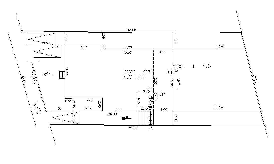 This is the simple building demarcation site layout plan and area survey detail with boundary line detail. download free DWG file of construction built-up area layout plan.