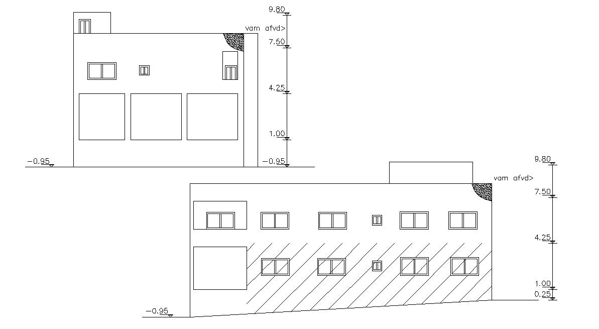 Download free residence house building elevation design which are different angle of view design with dimension details.