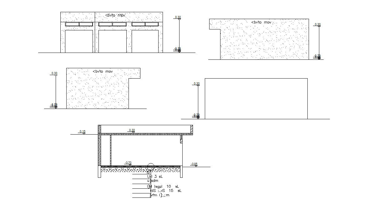 Download free DWG file of commercial shops building elevation design shows wall section, RCC slab and floor with dimension detail.