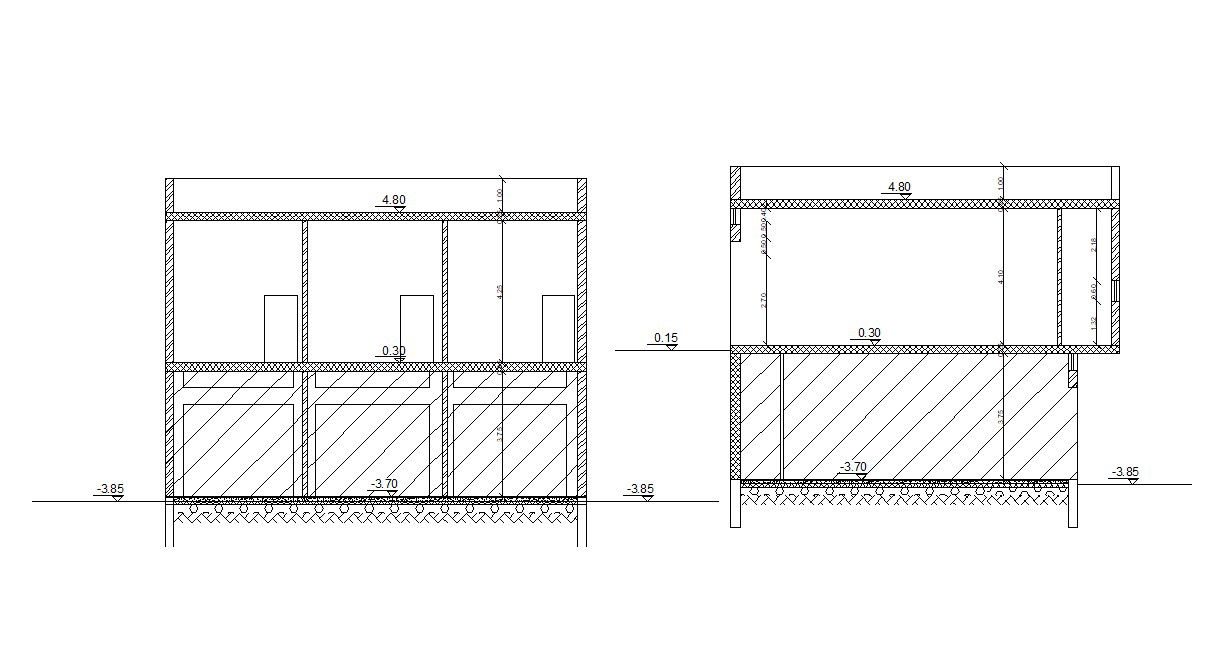 This is 2 storey shops building section drawing includes RCC wall section, floor and slab with dimension detail. download free DWG file of building section design.
