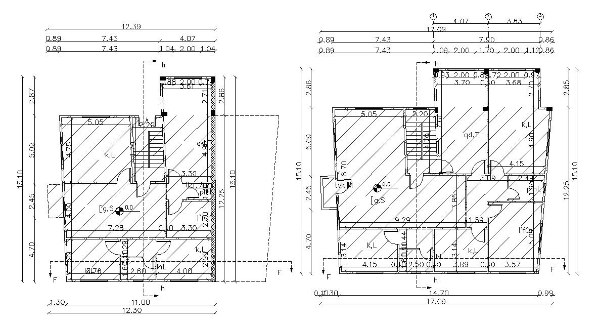 this is the planning of huge house design with working drawing dimension details, structure column layout plan, section line in plan, this is the architectural modern bungalow design.