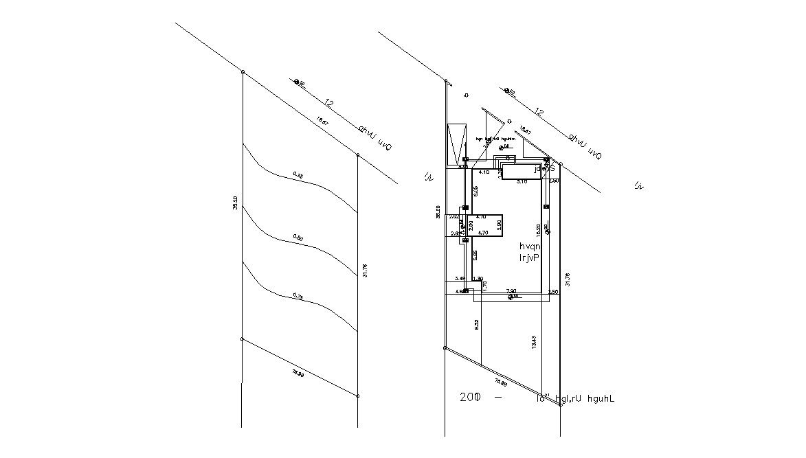 Download free DWG file of area survey site plan with demarcation drawing, drainage chamber line plan and house plot layout plan with contour design.