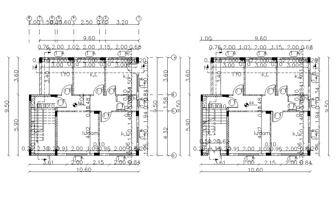 the civil house construction working plan AutoCAD drawing shows column layout plan, floor plan and building structure design with dimension details. download DWG house working plan and get more detail this CAD file.