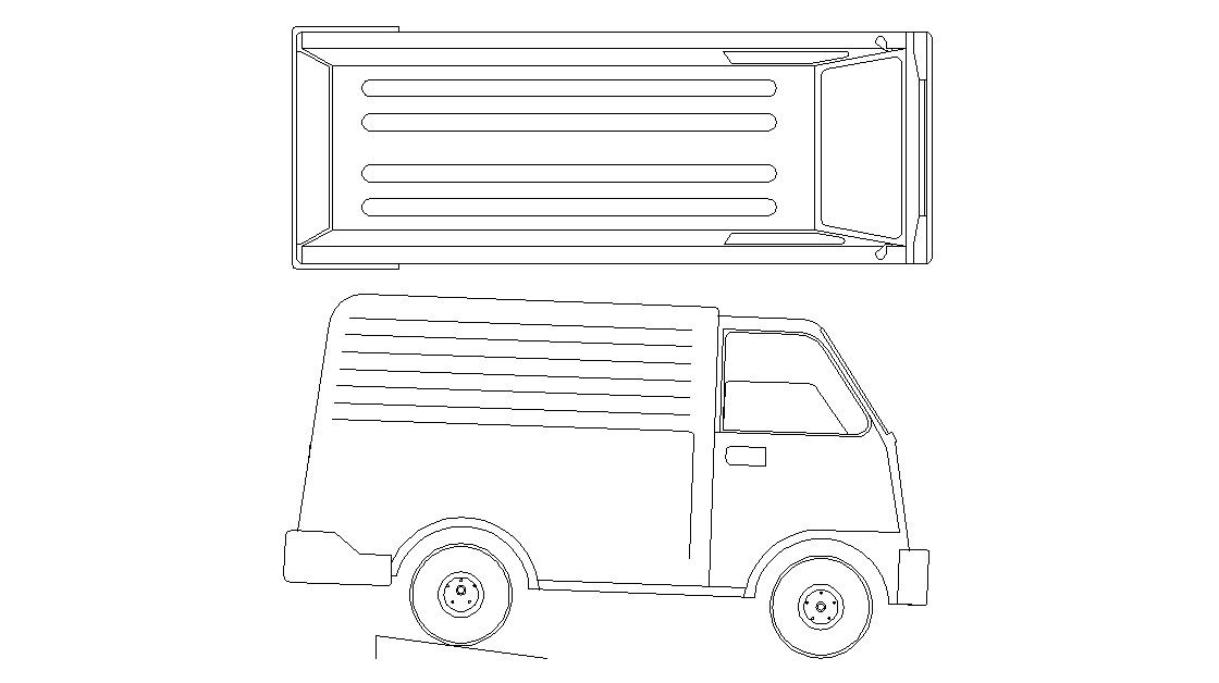2d CAD drawing of van top view and side elevation design. download free DWG file of van CAD blocks.