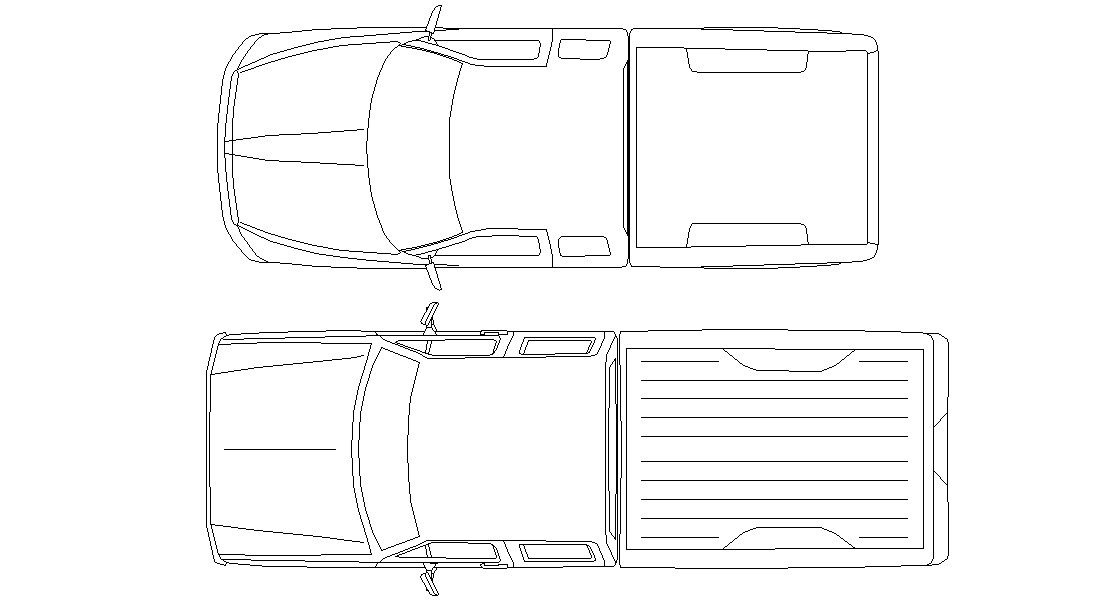 Download free DWG file of 2 different model Pickup Truck top view design AutoCAD drawing.