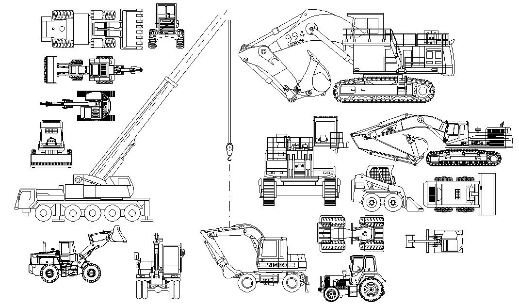 Download free Construction vehicle different vehicle CAD blocks design like loader truck, excavators, backhoe loaders, bulldozers, motor graders, and crawler loaders elevation design.