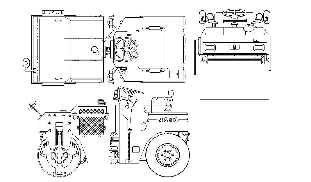 Download free DWG file of compactors CAD blocks drawing which shows front, side and top view elevation design.