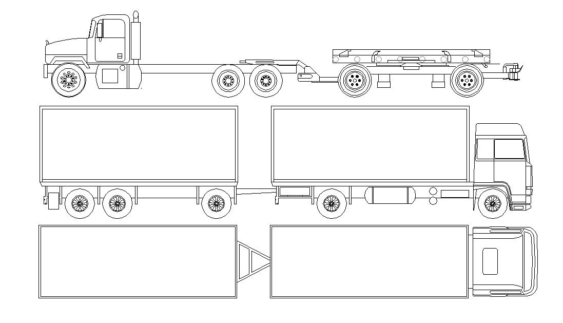 2d CAD drawing of a top view and side elevation design of transportation truck CAD blocks. download free DWG file of transportation truck CAD blocks