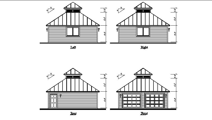 Single story roof house all sided elevations with dimension an AutoCAD file includes a 2D view of flooring with doors and windows. Staircase view provided. Balcony and wall designs with dimensions and scale, roof or terrace view and much more of house project.