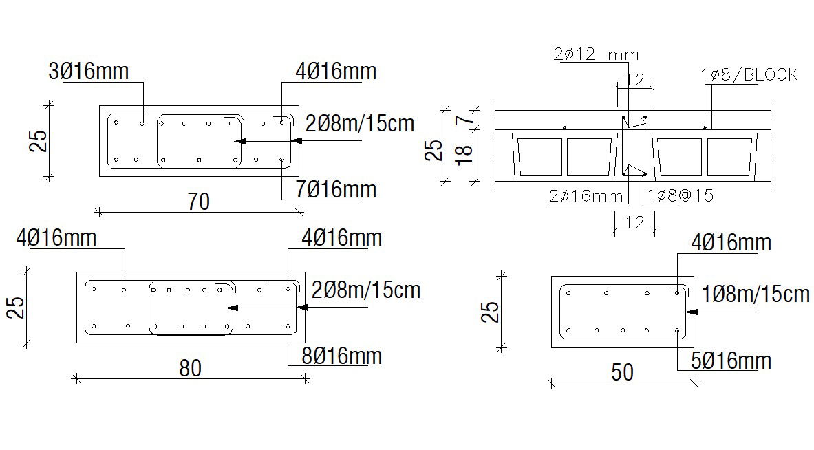 2d CAD drawing of RCC beam structure with reinforcement calculation description detail. download free RCC beam structure drawing DWG file.