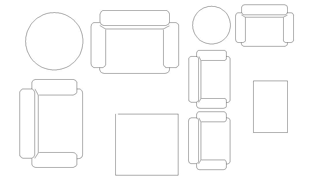 2d CAD drawing of furniture sofa CAD blocks with central table design. download free DWG file of sofa CAD blocks use in drawing room and living room.