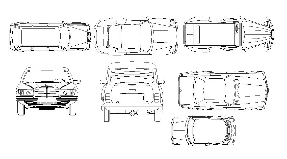 2d CAD drawing of a different model of car elevation design CAD blocks which is used for parking plan CAD presentation.