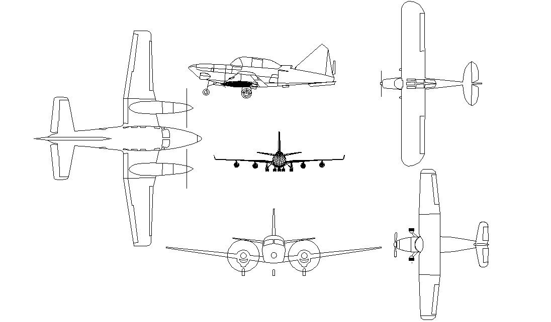 Download free DWG file of aircraft models elevation design with a number of different angles and use free CAD blocks in CAD presentation.