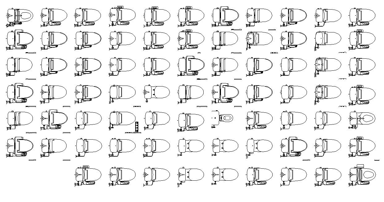 Download free DWG file of multiple water closet toilet tub elevation design shows different types of design, size and models which are used in toilet CAD presentation.