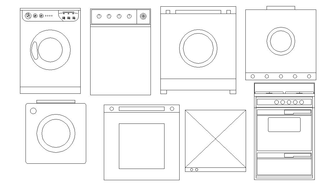 Download free DWG file of washing machine front load elevation design CAD blocks drawing. 2d CAD drawing of washing machine free design use for CAD presentation.