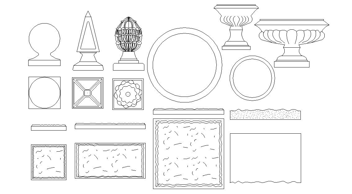 Download free DWG file of decorative accessories CAD blocks includes water pot and terracotta handmade design.