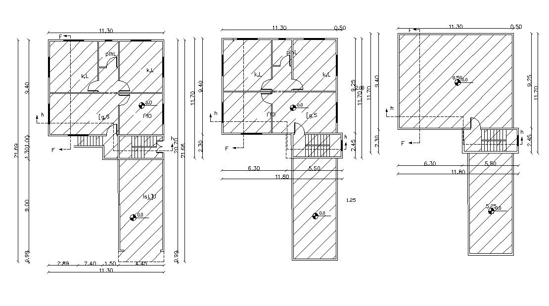 2D CAD drawing of residence house ground floor plan, first-floor plan and terrace floor plan design with sone hatching design and staircase with all dimension detail. download DWG file of house floor plan with margination details.