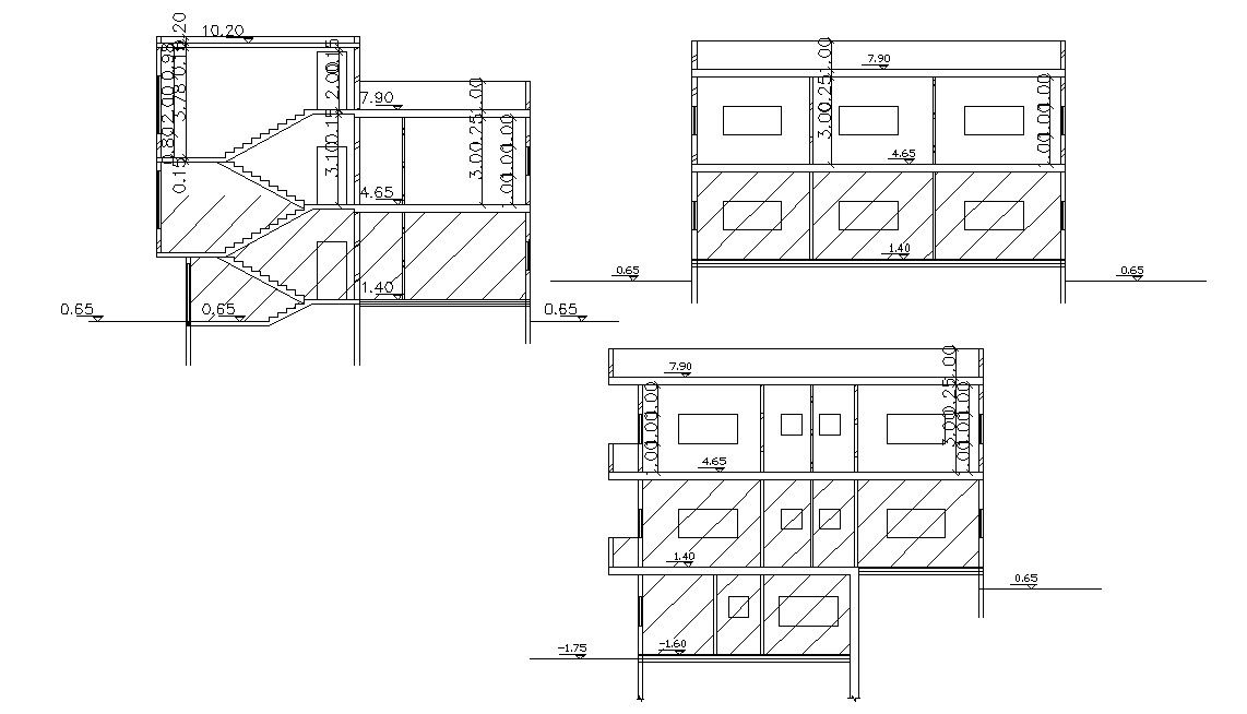 2D CAD drawing of residence house building section drawing with dimension detail. this drawing shows RCC floor, slab and staircase detail. download house building DWG file CAD drawing.