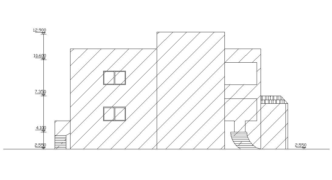 Download free DWG file of 2 storey house building rear elevation design with dimension detail and get more detail in this CAD file.