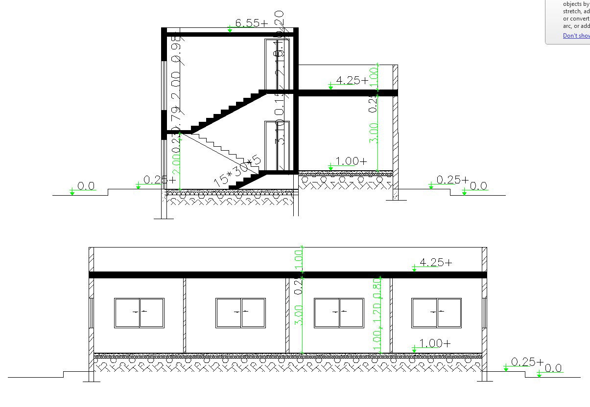 this is the AutoCAD drawing of two sections of residential building design with floor levels dimension details, stair sections and some details related to structure, download this drawing and use in related project.