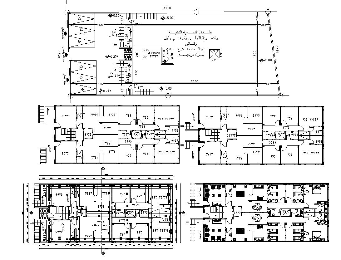 Many Floors Plan Of Apartment Building Design With Dimension DWG