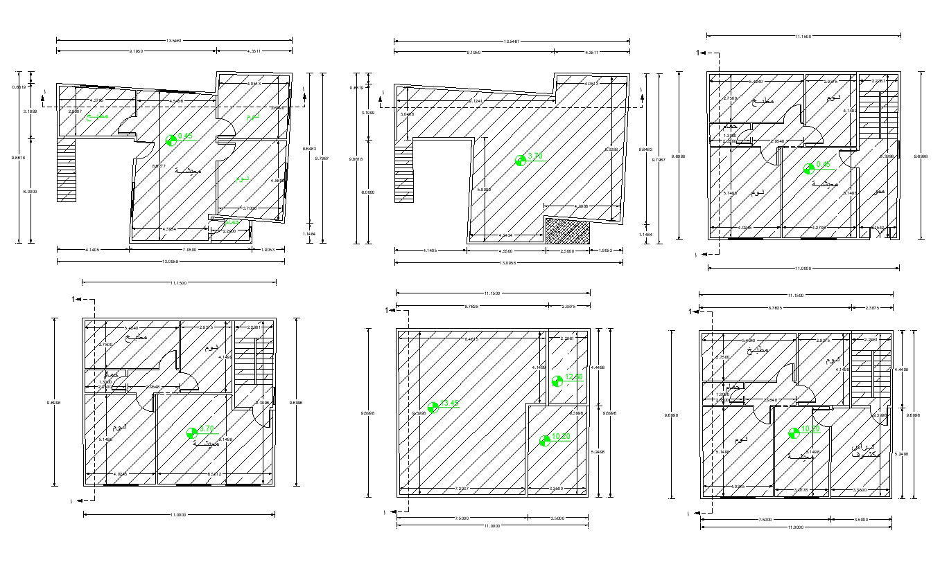 this is the drawing of many floor plan with working drawing dimension details, also added a terrace floor plan.in this planning added drawing room, kitchen, bedrooms, toilet, stair and other more details related to house.