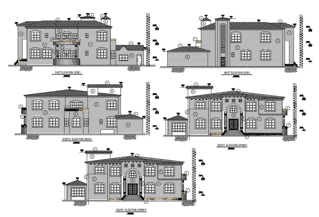 The architecture Residence house Building elevation design which are viewed from a number of different angles. also go with different outdoor traditional designs, and each design place a significant role in what the final look will be in AutoCAD drawing. download bungalow building elevation design and get more detail in this CAD drawing.