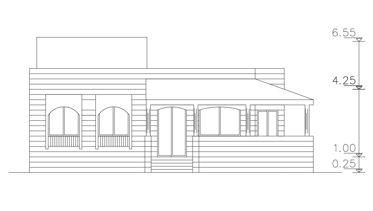 Download free DWG file of house building front elevation design with dimension detail. also has a wall, door, and window design in AutoCAD format.