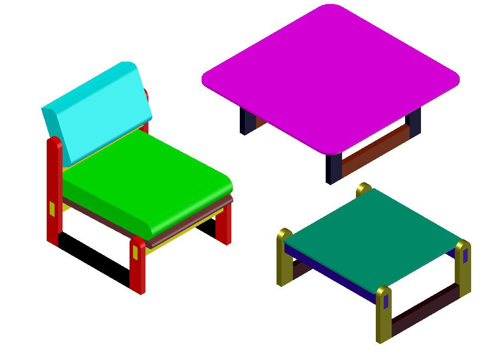 3D chair & centre table made by wooden & Other materials & use of drawing room.