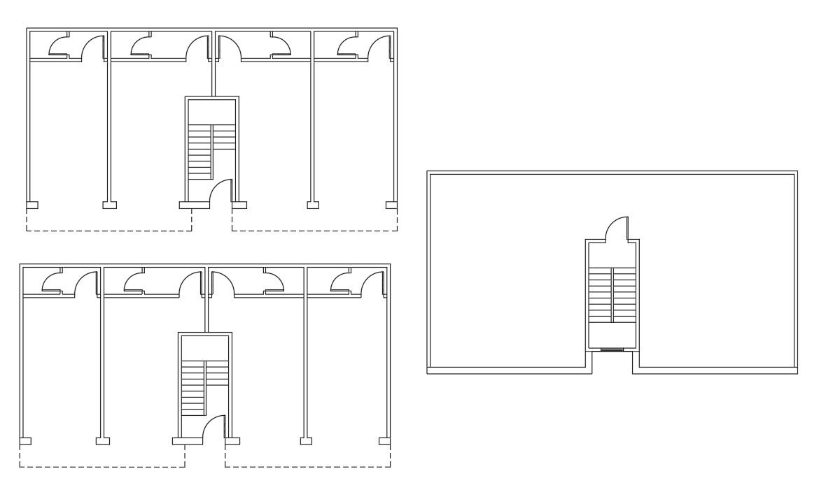 Download free DWG file of shop complex building floor plan drawing includes 4 shops with toilet and terrace plan design. this is simply drawing in AutoCAD software.