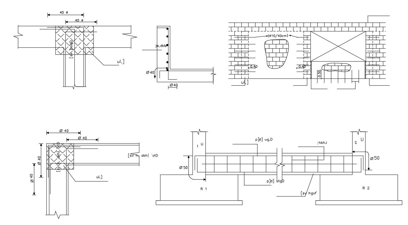 2d CAD drawing of column footing reinforcement structure detail with plinth beam and brick wall construction detail. download free CAD file of construction drawing