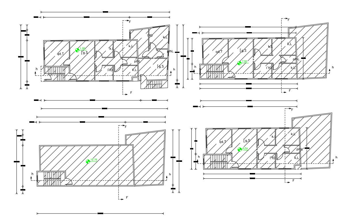 2D CAD drawing of residence house building floor plan with dimensions and hatching detail. download DWG file of house building floor plan CAD drawing.