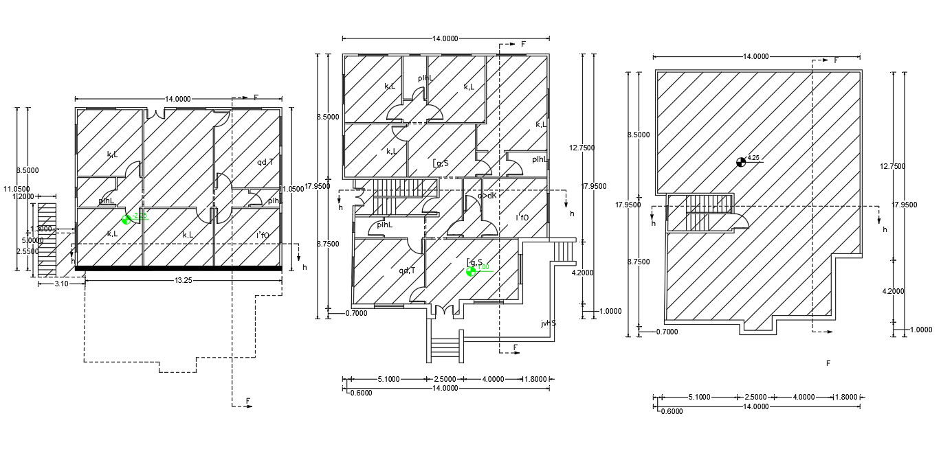 Download Architecture AutoCAD drawing of apartment house floor plan design with dimension design and hatching design. also get more detail of the terrace plan with build-up area detail.